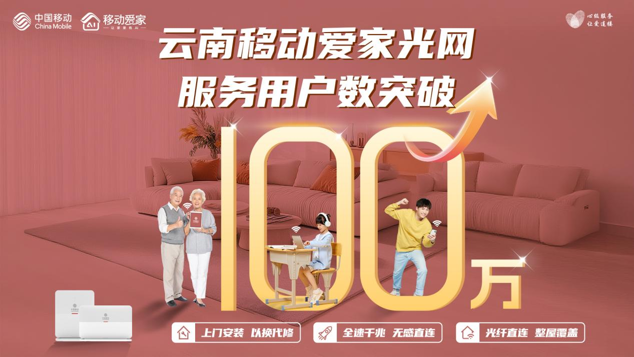 近日,中国移动云南公司(以下简称“云南移动”)爱家光网客户数突破100万,爱家光网服务品质深受客户认可和信赖,已成为云南家庭客户的优选。爱家光网FTTR技术是指将光纤网络直接延伸到家庭中的每一个房间,以前光纤只能到客厅,现在隐形光纤直接到房间,FTTR通过主网关和从网关的联合布局,让每个房间都信号满分,在每一个角落都能畅享高速网络。不仅提升了上网体验,还能支持更多设备的同时在线,满足多场景的网络覆盖需求,具有更快的网速、更稳定、更随心的优势。