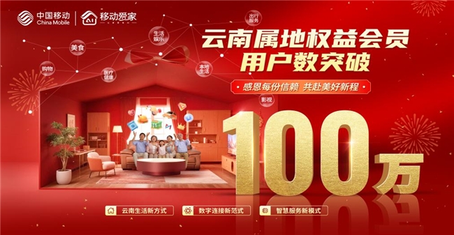 近日,中国移动云南公司(以下简称“云南移动”)属地生活权益会员客户数突破100万,已成为客户享生活优惠的重要选择。属地生活权益会员为客户提供综合服务解决方案,通过会员身份为客户提供商超美食、车主出行、家政维修等生活优惠,汇集超100个权益品牌,可使用品牌门店超5000+。云南移动利用连接千家万户、连接千行百业的资源,把通信连接发展成果转化为客户的生活品质,增强了人民的获得感、幸福感和安全感。