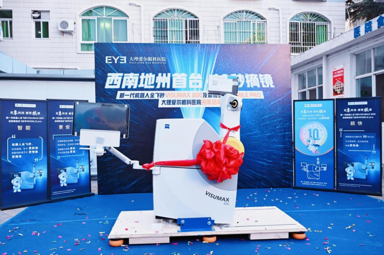 随着嘉宾们共同上台启幕,现场全体医护人员一同倒数,新一代机器人全飞秒VISUMAX 800及新微创手术全飞秒SMILE pro设备正式“安家”大理爱尔。